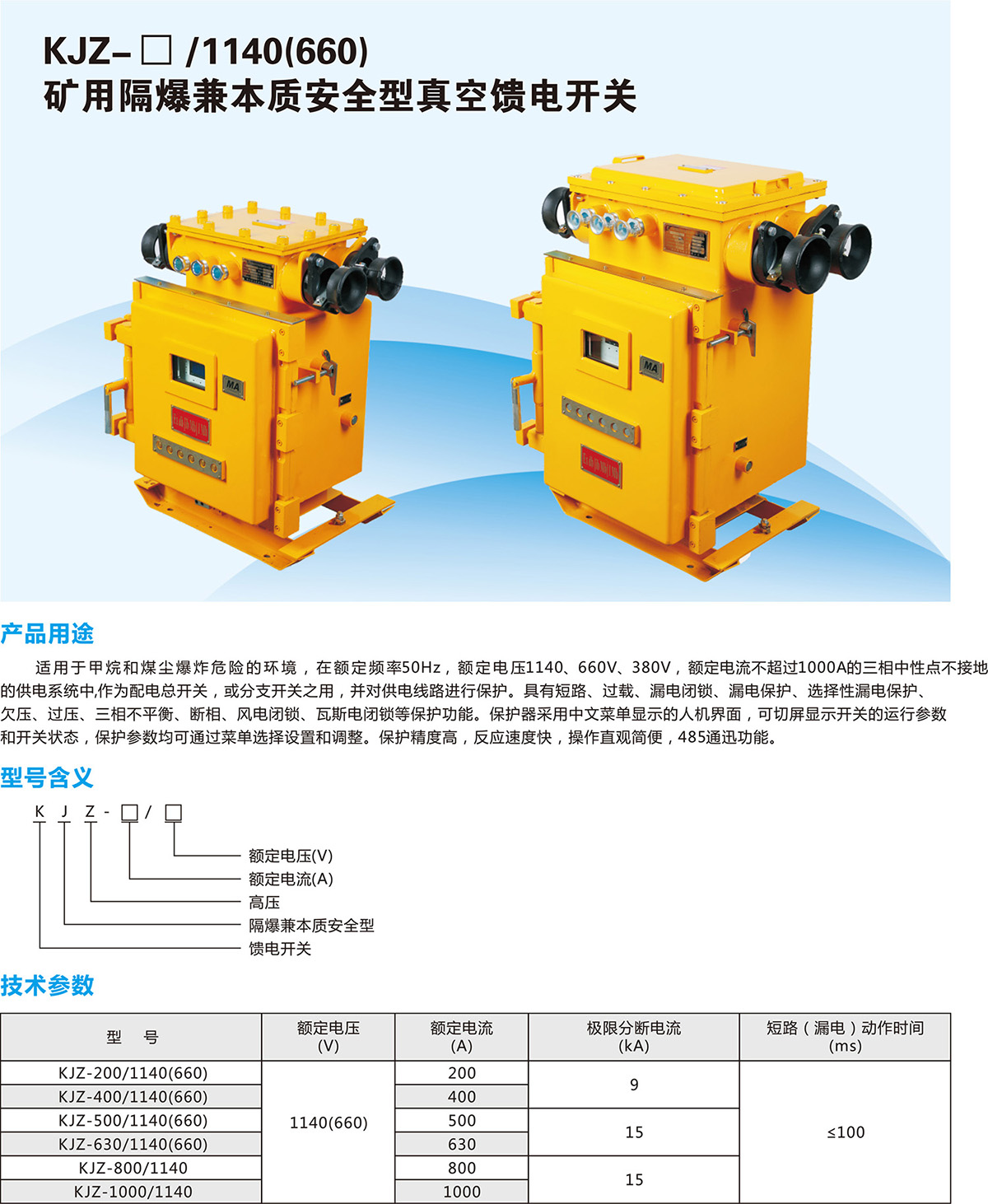 KJZ-□/1140(660)矿用隔爆兼本质安全型真空馈电开关