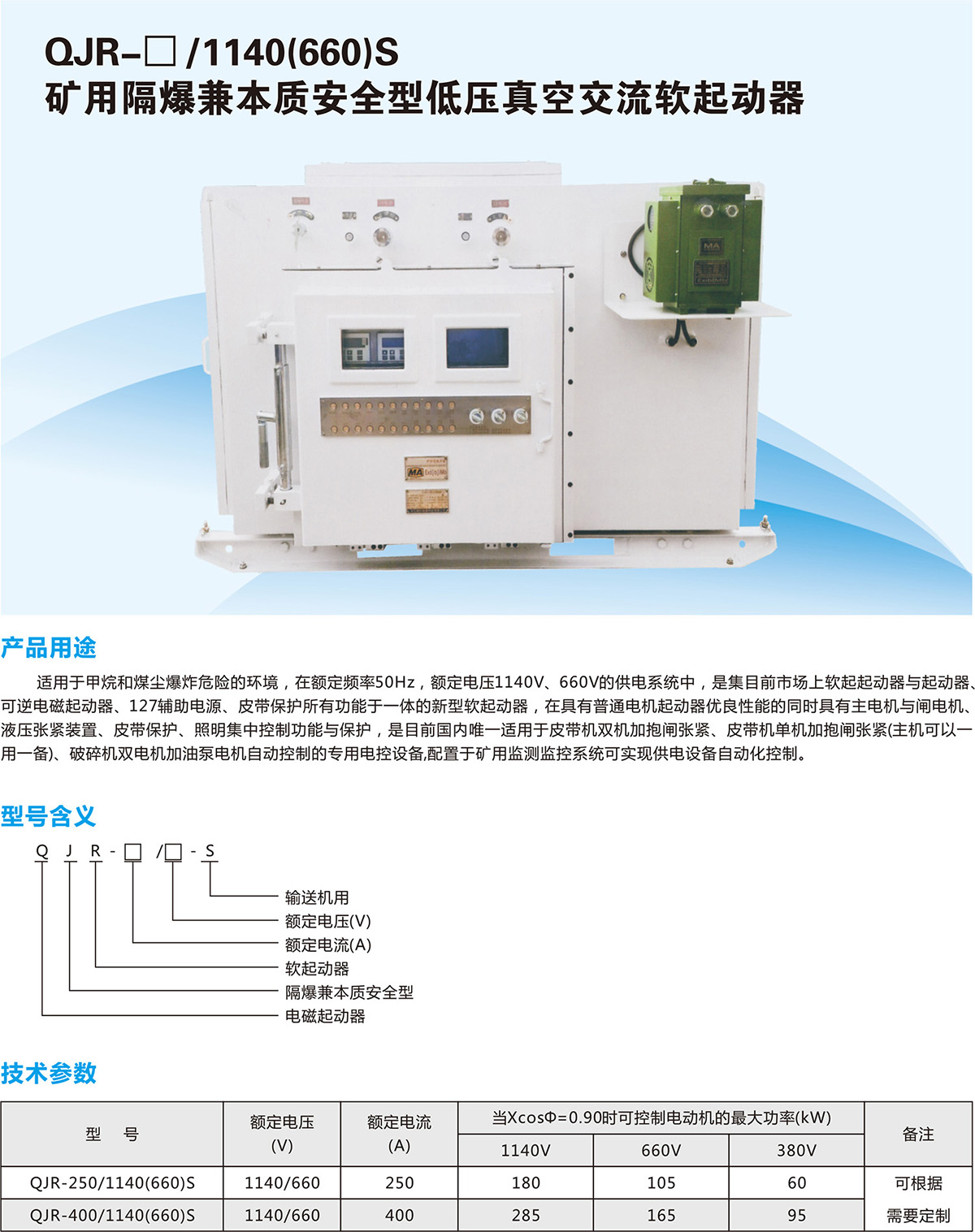 QJR-□/1140(660)S矿用隔爆兼本质安全型低压真空交流软起动器
