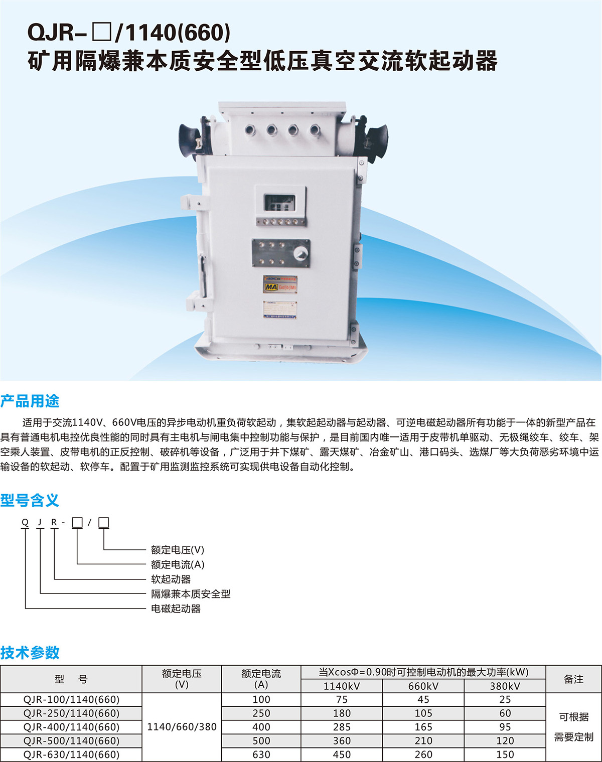 QJR-□/1140(660)矿用隔爆兼质安全型低压真空交流软起动器