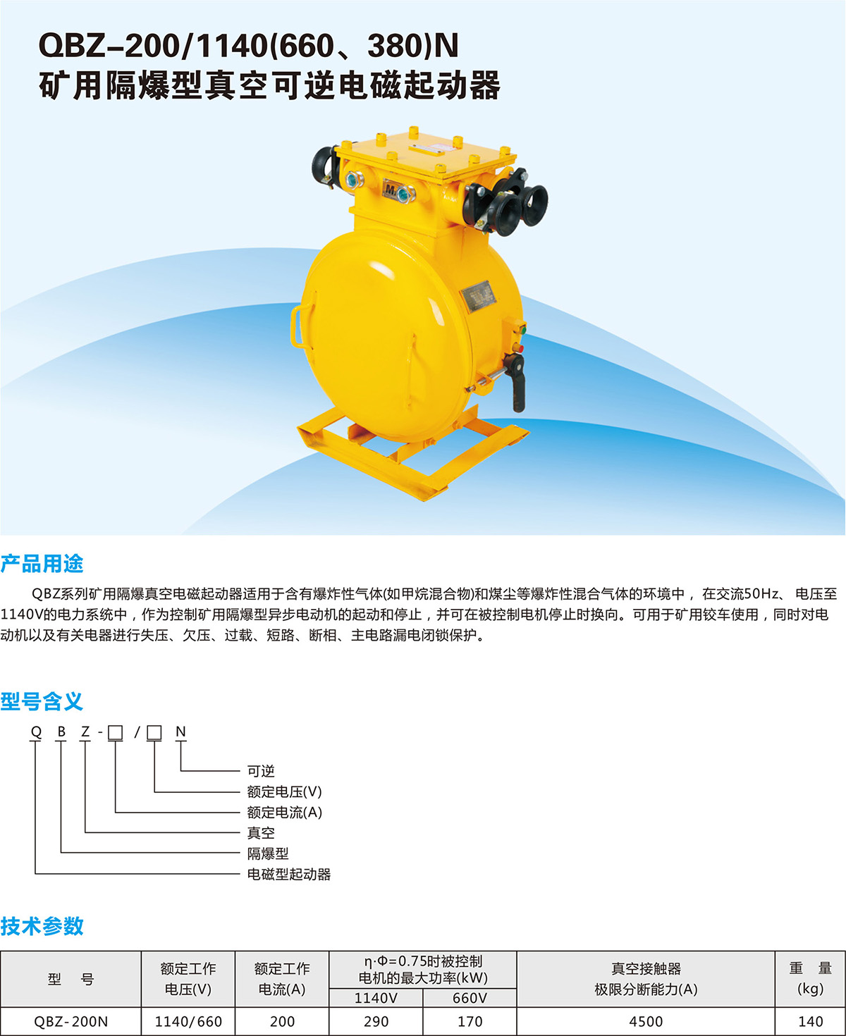 QBZ-200/1140(660、380)N矿用隔爆型真空可逆电磁起动器
