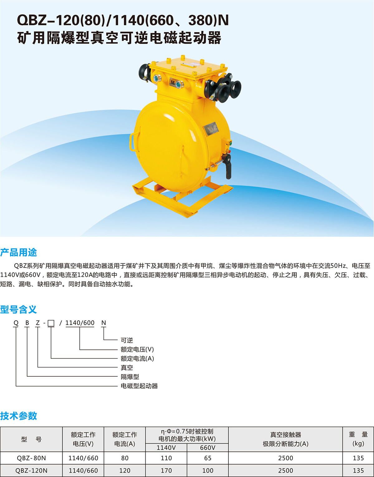 QBZ-120(80)/1140(660、380)N矿用隔爆型真空可逆电磁起动器